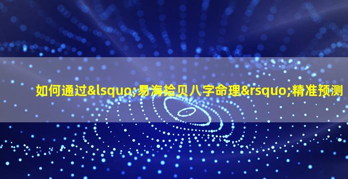“易海拾贝”作为八字命理学的学习或预测体系之一,其核心仍遵循传统八字命理的基本原则。要精准预测人生运势,需结合系统学习和实践经验。以下是分步骤的解析: