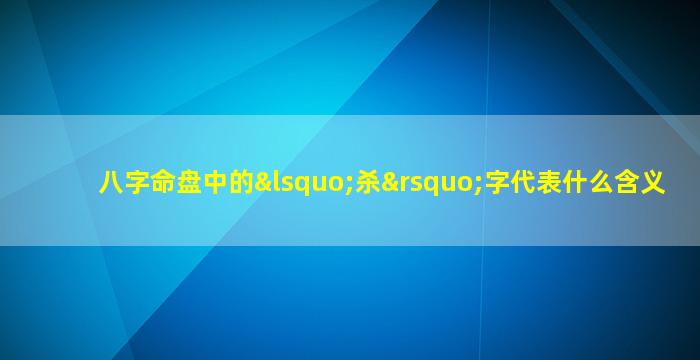 在八字命理学中,“杀”是“七杀”的简称,又称“偏官”,是十神之一,具有复杂而强烈的象征意义。以下是其核心含义及影响的详细分析: