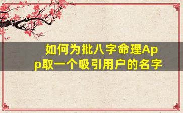 为批八字命理App取名时,需兼顾传统文化底蕴、易传播性和用户吸引力。以下是一些命名思路和具体建议,分为不同风格供参考: