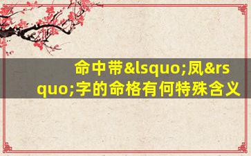 在中国传统命理学中,“凤”是祥瑞的象征,常与“龙”对应,代表高贵、吉祥和非凡的命运。命中带“凤”字的命格(如“凤阁”“凤星”“金凤”等)通常被认为具有以下特殊含义: