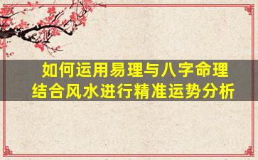 运用易理与八字命理结合风水进行精准运势分析,是一门综合性的传统术数实践。以下是系统的操作方法和理论框架,帮助您深入理解并应用: