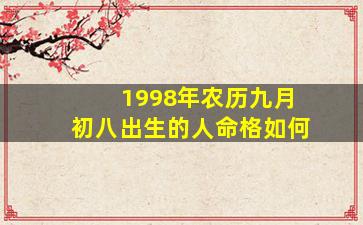 根据中国传统命理学,一个人的命运(命格)通常通过生辰八字(年、月、日、时的天干地支)来分析。1998年农历九月初八对应的公历日期是1998年10月28日,时辰未提供的情况下,暂按默认的子时(23:00 1:00)推算。以下是基础命理分析: