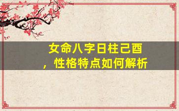 根据八字命理,日柱己酉(天干己土,地支酉金)的女性,其性格特点可从五行生克、十神关系及地支藏干等角度解析如下: