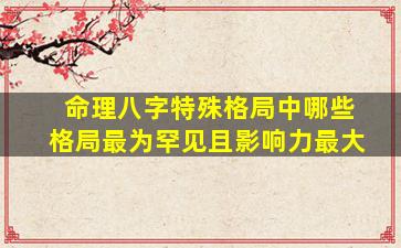 在命理八字中,某些特殊格局因其形成条件极为苛刻,往往代表着罕见的命运轨迹,且对人生运势影响深远。以下是几种最为罕见且影响力巨大的格局,附详细解析: