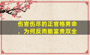 在八字命理中,“伤官伤尽”是一个特殊格局,尤其对正官格男命而言,若能满足特定条件,确实可能实现富贵双全。这一现象看似矛盾(因伤官本为克制正官的“凶神”),实则蕴含深刻的命理逻辑,以下从几个关键角度解析: