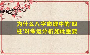 八字命理中的“四柱”(年柱、月柱、日柱、时柱)之所以被视为命运分析的核心,是因为它们构成了一个完整的时空模型,通过天干地支的组合与五行生克关系,揭示个体与宇宙能量的互动规律。以下是其重要性的具体原因:
