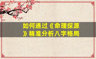 通过《命理探源》精准分析八字格局,需结合该书的理论框架和传统命理学的核心方法。以下是分步骤的解析: