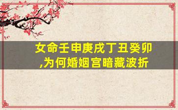 根据您提供的八字(女命:壬申、庚戌、丁丑、癸卯),婚姻宫的波折主要体现在以下几个方面: