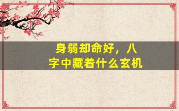 在八字命理中,“身弱却命好”看似矛盾,实则蕴含着深刻的五行生克与格局配合的玄机。这种现象通常与以下关键因素有关: