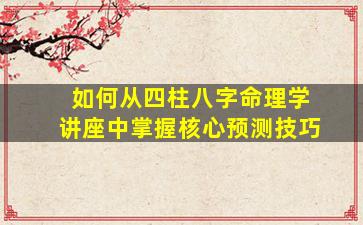 要从四柱八字命理学的讲座中掌握核心预测技巧,需要系统性地学习理论、结合实践,并注重思维方法的训练。以下是具体步骤和建议: