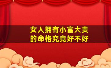 关于“女人拥有小富大贵的命格究竟好不好”,可以从命理学、社会现实和个人发展等多个角度来探讨。这个问题没有绝对的好坏,关键在于个人如何理解和运用这种命格特质。以下是一些分析方向: