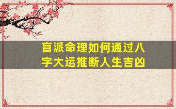 盲派命理作为中国传统命理学的重要流派之一,其核心在于通过八字和大运的搭配,结合独特的“象法”与“技法”来推断人生吉凶。以下是盲派命理推断吉凶的关键方法和逻辑框架: