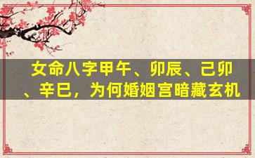 八字排盘分析(女命:甲午、乙卯、己卯、辛巳)
