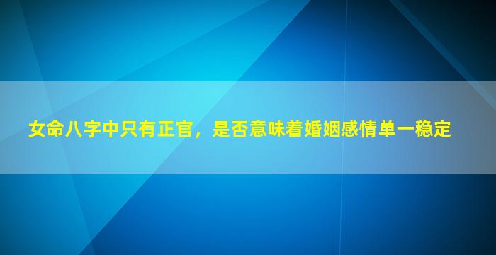 在八字命理中,"女命只有正官"确实常被视为婚姻感情相对稳定的信号,但实际分析需结合全盘格局,不可单一而论。以下是具体分析框架: