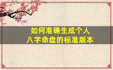 生成个人八字命盘(又称四柱排盘)的标准版本需要遵循传统命理学的规则,结合精确的出生时间和地理位置。以下是详细步骤和注意事项: