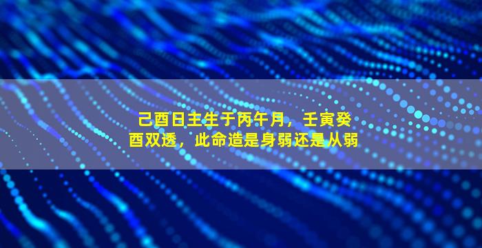 日主(己土)虽得月令火生(午月火旺),但被天干壬癸水耗、地支酉金泄、寅木克,综合来看: