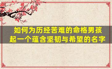 为历经苦难的男孩起名,既要体现生命的厚重与坚韧,又要蕴含光明与希望的力量。以下是一些精心设计的命名思路与建议,兼顾文化内涵与音韵美感:
