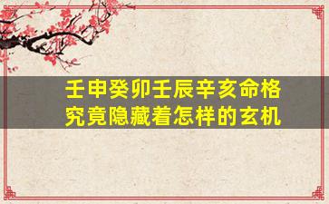 关于“壬申癸卯壬辰辛亥”这一命格的玄机,我们可以从传统八字命理学的角度进行解析。以下是分步骤的详细分析: