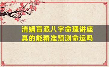 关于“清娟盲派八字命理讲座”或其他命理学派能否精准预测命运的问题,需要从多个角度理性看待: