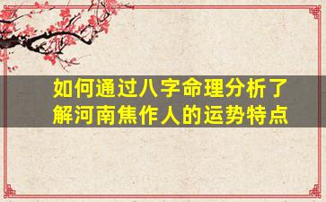 通过八字命理分析河南焦作人的运势特点,需结合地域文化、气候环境等综合因素,同时以八字基础理论(四柱、五行、十神等)为核心展开。以下是具体分析思路和方法: