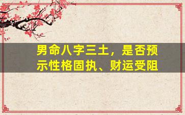 “三土”仅是单一因素,需结合八字格局、五行生克、十神搭配等综合分析。土旺未必注定固执或财运差,合理引导反而能成稳重致富之命。建议提供完整八字(如日主、地支藏干、大运等)进一步精准推断。
