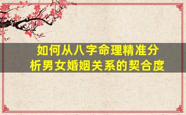 从八字命理分析男女婚姻关系的契合度(合婚),需结合双方命局的五行生克、十神互动、神煞配合等多维度信息。以下是系统的分析方法: