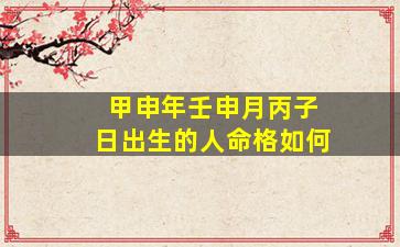 根据八字命理学,甲申年壬申月丙子日出生的人的命格分析如下(注:八字分析需结合具体时辰,以下为日柱基础分析,仅供参考):