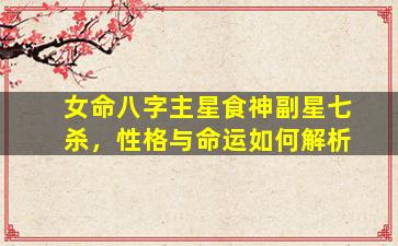 在中国传统命理学中,八字中的主星(十神)和副星(藏干或特殊配置)共同影响一个人的性格与命运走向。女命八字若以食神为主星、七杀为副星(或藏干中显著存在),其性格和命运解析需结合两者特性及五行生克关系。以下是具体分析: