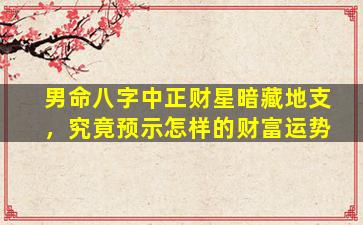 在八字命理中,正财星暗藏地支的男命财运分析需结合十神、地支藏干及整体格局来综合判断,以下是可能的几种情况及预示的财富特征: