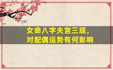"夫宫三现"本身并无绝对吉凶,需结合命局整体判断。建议咨询专业命理师分析具体八字结构(如夫星是否得令、有无解救等),以更精准评估对配偶运势的影响。命理提示的倾向性可通过后天经营与心态调整化解。