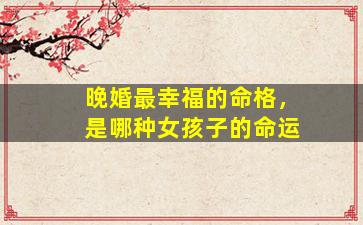在命理学(如八字、紫微斗数等)中,关于"晚婚最幸福"的命格分析,通常需要结合个人生辰八字的整体格局来判断。不过,从传统命理的角度来看,以下几种女性命格特征,常被认为适合晚婚且容易在晚婚中获得幸福: