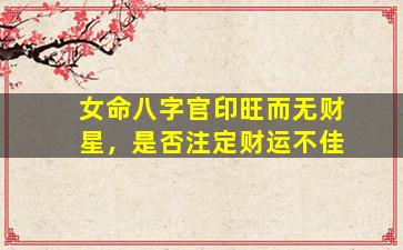 在八字命理中,女命官印旺而无财星是否注定财运不佳,需结合具体命局和十神关系综合分析,不能一概而论。以下为关键解读要点: