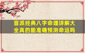 关于“盲派经典八字命理”是否能准确预测命运的问题,需要从传统文化、科学逻辑和个人认知等多个角度理性看待。以下是一些关键点的分析:
