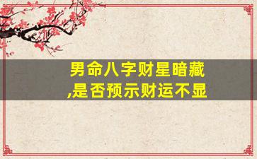 在八字命理中,"财星暗藏"通常指财星(正财、偏财)在地支藏干中而不显于天干,这确实可能对财运的显现方式产生影响,但并非绝对意味着"财运不显"。具体需结合以下因素综合分析: