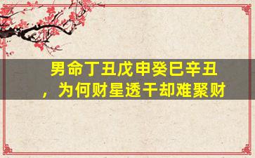 透干财星:年干丁火为偏财,但丁火坐丑土(湿土),地支无强根(仅日支巳火藏丙火正财),火势微弱。