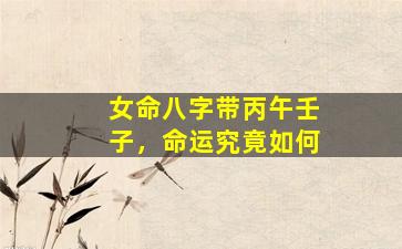 在八字命理中,"丙午壬子"的组合涉及天干地支的五行生克与神煞关系,对女命的影响需结合具体八字结构综合分析。以下是关键要素的解读:
