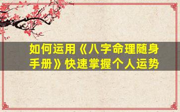 运用《八字命理随身手册》快速掌握个人运势,可以按照以下步骤系统性地学习和应用: