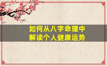 从八字命理中解读个人健康运势,主要依据五行生克、十神组合、干支刑冲以及命局强弱等要素,结合中医理论进行综合分析。以下是具体方法: