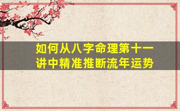 从八字命理推断流年运势是命理分析的核心内容之一,需要结合原局、大运与流年的互动关系。以下是系统化的推断方法,尤其适用于类似“第十一讲”这类进阶课程中的技巧整合: