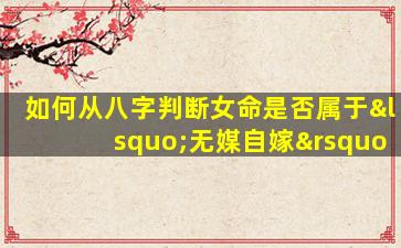 在传统八字命理中,"无媒自嫁"通常指女性不依赖传统媒妁之言,自主选择婚姻对象或通过自由恋爱成婚。这种命局特征主要与以下命理因素相关,需综合分析: