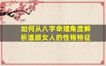 从八字命理角度解析温顺女性的性格特征,需结合十神、五行生克及日主强弱等要素综合分析。以下是具体解析思路: