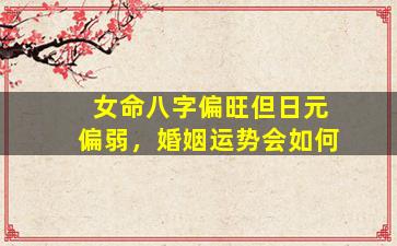在八字命理中,女命八字偏旺但日元偏弱的情况需要结合具体命局分析,但可以从以下几个角度综合判断婚姻运势: