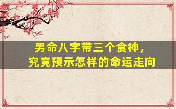 在八字命理学中,食神是日主(出生日的天干)所生的同阴阳五行,代表才华、创造力、享乐、福气等。男命八字带三个食神,其影响需结合全局(如五行强弱、十神配置、大运流年等)综合分析,但通常有以下几种可能的方向: