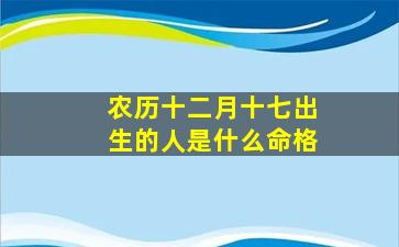 根据中国传统命理学(八字、紫微斗数等),一个人的具体命格需要结合出生年、月、日、时的天干地支(共八个字)来综合分析,仅凭农历月份和日期(十二月十七)无法确定完整命格。但可以提供一些相关背景供参考: