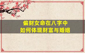 在八字命理中,偏财星对于女命的财富与婚姻的影响需要结合十神关系、五行生克及命局整体配置来分析。以下是具体的体现方式: