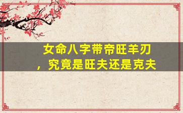 在传统命理学中,女命八字带“帝旺”和“羊刃”的解读需要结合整体命局、五行生克、神煞配合等因素综合判断,不能简单断言“旺夫”或“克夫”。以下是具体的分析思路: