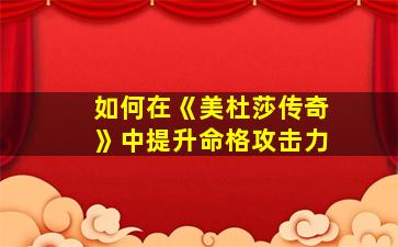 在《美杜莎传奇》中提升命格攻击力通常需要综合多种玩法,以下是一些常见的有效途径,具体可根据游戏版本调整策略: