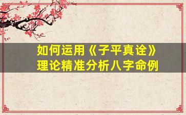 运用《子平真诠》理论分析八字命例需要系统掌握其核心逻辑,包括格局论、用神选取、十神配合及五行生克等。以下是具体步骤和关键要点: