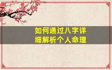 通过八字(四柱命理)解析个人命理是一项系统的分析过程,需要结合天干地支、五行生克、十神关系、大运流年等要素。以下是详细的步骤和方法: