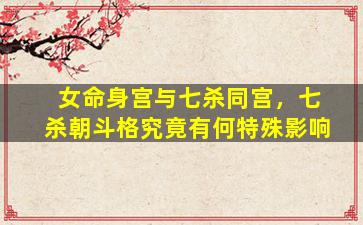“女命身宫与七杀同宫”及“七杀朝斗格”是紫微斗数中的特殊格局,其影响需结合命盘整体结构来分析,但可以从以下几个方面理解其特殊性:
